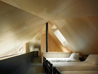 PROJETO DO ARQUITETO NORUEGUÊS TODD SANDERS PARA STUDIO EM FOGO ISLAND, NEWFOUNDLAND, CANADA. A TORRE NEGRA DE 10M DE ALTURA DESTACA-SE NA PAISAGEM INÓSPITA. NO TÉRREO, UMA COZINHA, LAREIRA E BANHEIRO. NO OUTRO PISO, UM STUDIO DE PÉ-DIREITO DUPLO COM TETO INCLINADO EM VIDRO. INSPIRADOR, NÃO?